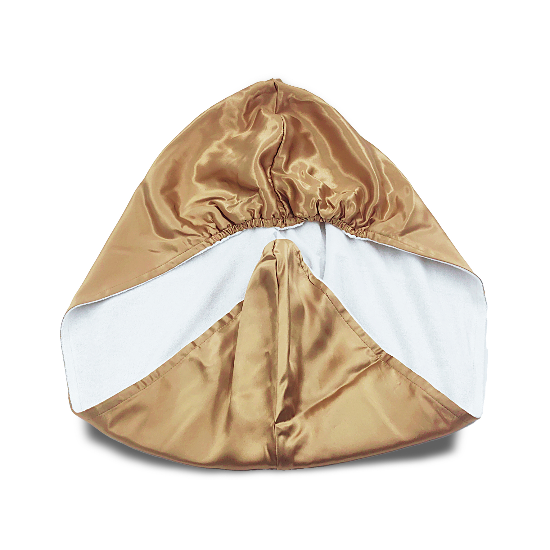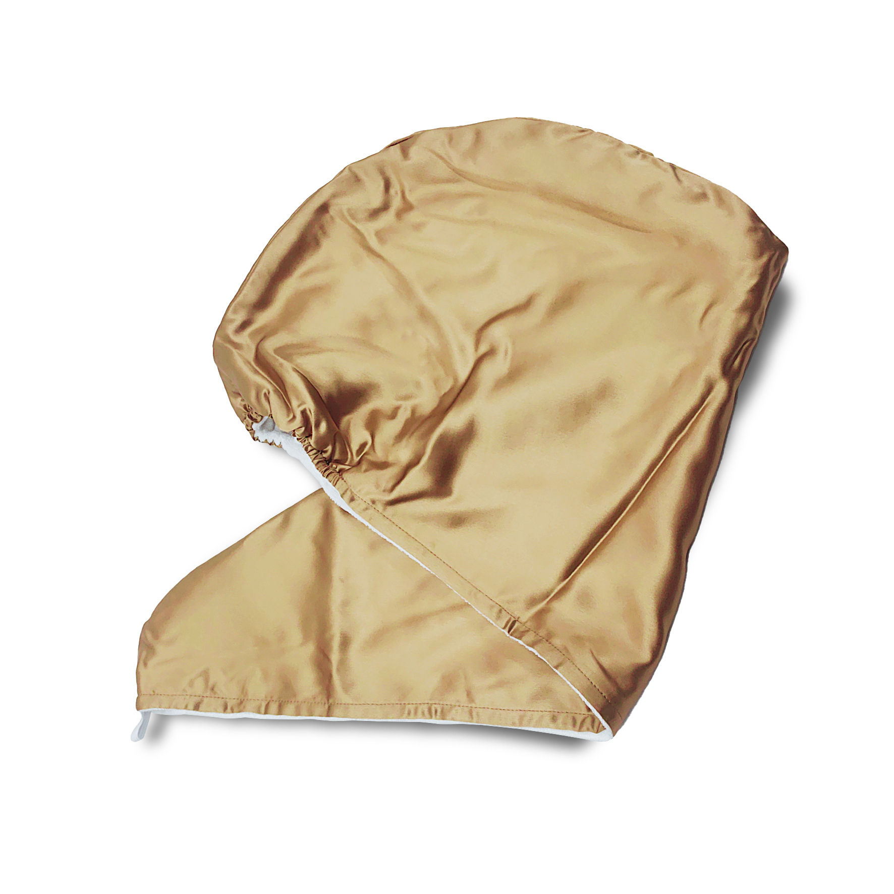 Set hodvábna návliečka, uterák na vlasy a gumička – Medeno zlatý